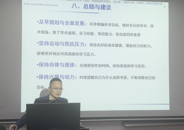 赵旭峰从升学路径、能力储备、择校考量、方向选择等方面提出建议,鼓励同学们当下应参与科研项目或实践实习,提升专业技能,尽早确定未来科研、就业方向,并付诸行动。