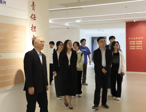 在江苏苏豪国际集团股份有限公司党委副书记张培根的带领下,师生共同观看了企业发展历程短片,并参观了公司丝绸制作全流程展区、公司文化建设展区、外贸业务办公区域等,深入了解公司的主营业务、产品特色、发展概况等。