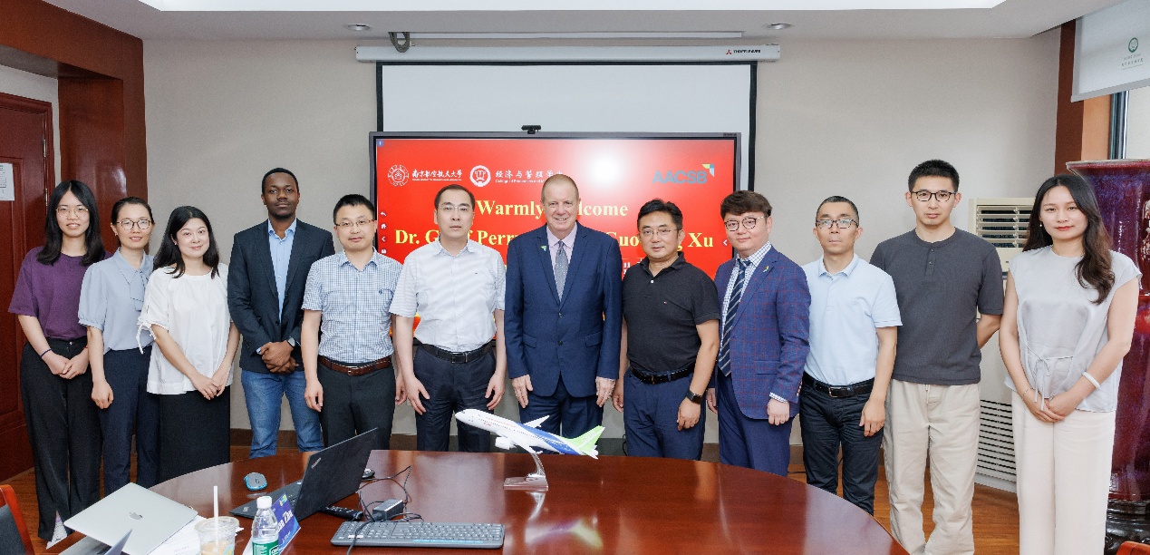 2025年6月4日下午,AACSB(The Association to Advance Collegiate Schools of Business)国际高等商学院协会执行副总裁Geoff Perry博士与东亚区负责人徐国栋先生一行访问必赢3003no1线路检测中心,指导学院AACSB国际认证工作。学院党委书记苏州、教授委员会主席周德群、副院长周志鹏、国际认证主管赵亚普、以及学院AACSB国际认证专班教师代表参加了座谈交流会。