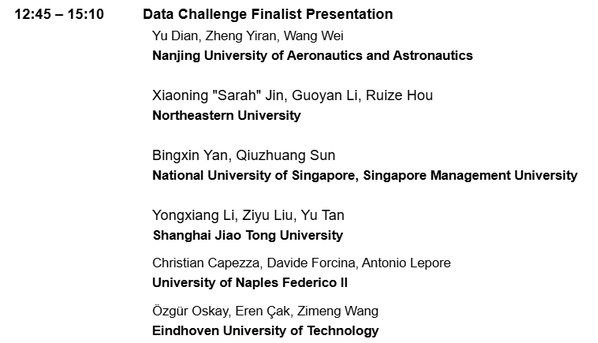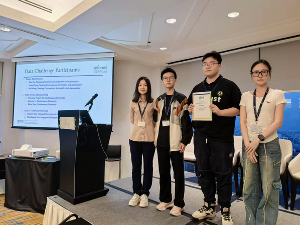 2025年运筹学与管理科学学会质量、统计与可靠性分会(INFORMS Conference on Quality, Statistics & Reliability, ICQSR 2025)于6月30日至7月3日在新加坡举行。该会议是全球运筹学和管理科学领域的顶级学术盛会,由国际运筹学与管理科学协会和新加坡国立大学联合举办。必赢3003no1线路检测中心学生郁典、郑伊然、王崴以初赛第二名的成绩(模型预测误差小,鲁棒性强)晋级本次分会数据挑战赛决赛,并荣获Finalist奖项。