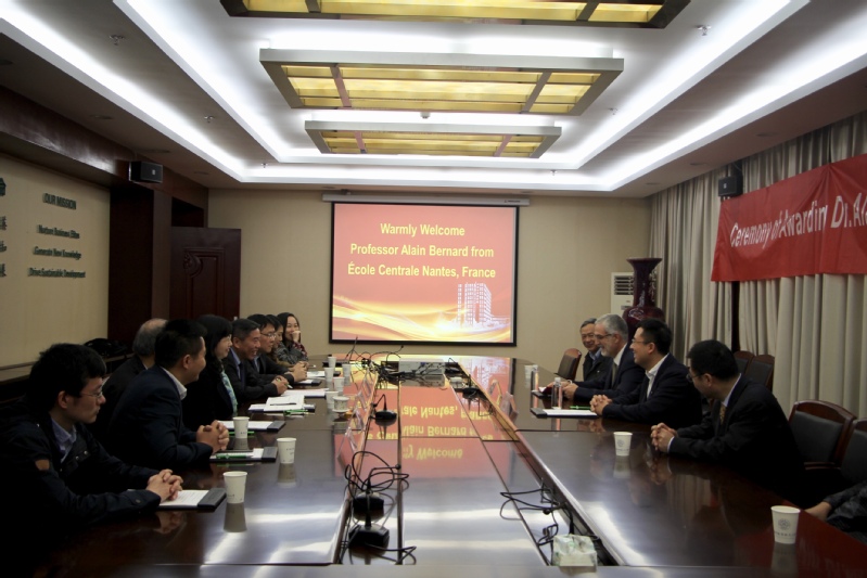 Professor Alain Bernard said it is his honored to be awarded as honored professor of NUAA and expressed the wish for deepen the cooperation between NUAA and École Centrale Nantes. He proposed that the two sides could build “Grey Data Analysis and Production Service System Joint Research Center”, as well as student exchange and faculty visiting. Zhang Zhuo hoped to take this opportunity to strengthen intercollegiate relationship and promote cooperation in scientific research, teaching skills and other academic activities.
