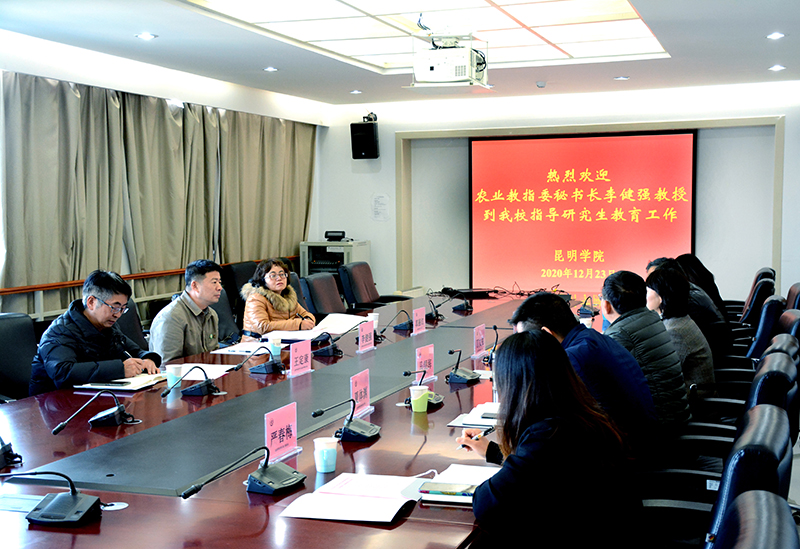 12月23日,学校邀请全国农业专业学位研究生教育指导委员会秘书长李健强教授到校指导研究生教育工作。学校在办公楼311召开交流会,会议由校长丁文丽主持。副校长马银海,科学技术处、学生处(学生工作部)及农学与生命科学学院主要领导,研究生部全体人员参会。