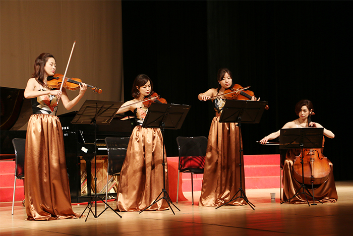 12月1日,日本东京青年古典乐团到best365进行“2018重拾经典记忆昆明音乐会”公益演出。本次演出由昆明聂耳研究会、best365足球官网承办。昆明聂耳研究会会长、昆明市政协原主席、昆明登协名誉主席田云翔,昆明聂耳研究会副会长、昆明市政协原副秘书长周忻,best365足球官网副校长熊晶等领导嘉宾和best3651100余名师生共享音乐盛宴。 今年是中日缔结和平友好条约40周年,也是昆明市和日本藤泽市缔结友好城市37周年,以音乐会作为文化交流活动,让师生在简朴宁静的氛围当中享受音乐的时光,共同秉承爱好和平的不变之心。 本场音乐会以弦乐四重奏和双钢琴的方式共演奏了13首中日经典名曲。音乐会上半场演奏的中国曲目《金蛇狂舞》、《梅娘曲》、《告别南洋》,改编自我国人民音乐家聂耳。演奏《梅娘曲》和《告别南洋》时,东京青年乐团特别邀请了南侨机工合唱团,采用中外结合的方式联合演出,歌曲曲调时而凄凉婉转、时而激进亢奋,以音乐之声谱写出南洋青年爱国、救国的最美篇章。以双钢琴弦乐四重奏的方式演奏的交响音乐作品《黄河钢琴协奏曲》,历久弥新,催人奋进。双钢琴版的《梁山伯与祝英台》旋律悠扬婉转,感染力极强,呈现中国经典音乐旋律以飨听众。 下半场乐团带来了八首日本经典曲目中,除了宫城道雄所做的日本民族传统曲目《春之海》外,还有很多中国观众熟悉的作品。久石让的经典名作《人生旋转木马》和《菊次郎的夏天》都是宫崎骏漫画中的音乐,乐团通过钢琴五组奏的方式将改编过的曲目进行特别呈现,让现场观众回忆满满,久久不能忘怀。两首曾入选20世纪感动日本的十大名单的《良日启程》和《津轻海峡冬景色》以乐团演奏的方式加以呈现,悦耳动听的旋律给听众一种荡气回肠,心旷神怡之感。音乐会最终在青年古典乐团和听众的互动曲目《昂首向前》中结束,该乐团带来的精彩演出获得听众的阵阵掌声。