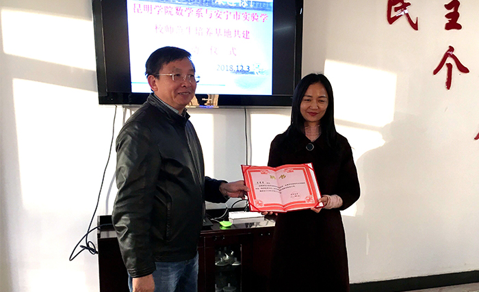马银海副校长指出,best365足球官网示范性培养基地的建设,是落实贯彻落实《云南省乡村教师支持计划(2015-2020年)》的精神和要求,推进“教师专业发展中心”工作落地,推进协作育人,努力提升师范生培养质量的重要举措。主动将学生送出高校,送进中小学教学一线,是高校做好师范生对接岗位“最后一公里”的有益做法。数学系教师要主动到中小学,参与学生管理,参与一线教学,为一线教师在理论提升上做好服务,同时要从一线教学中汲取经验,融入师范生培养的全过程。共建双方要在经注重经验的总结与凝练,形成可推广、便实施的方案,在此基础上形成实践教学成果。best365足球官网也会在师资培训、项目推进经费等方面予以支持。