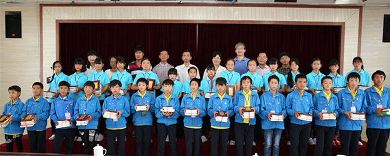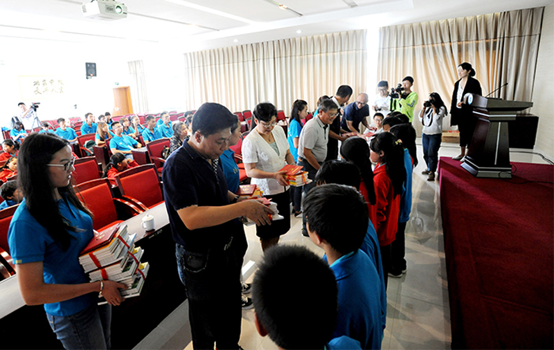 学校领导和嘉宾为第二期“儿童大学”暑期班学员赠送图书