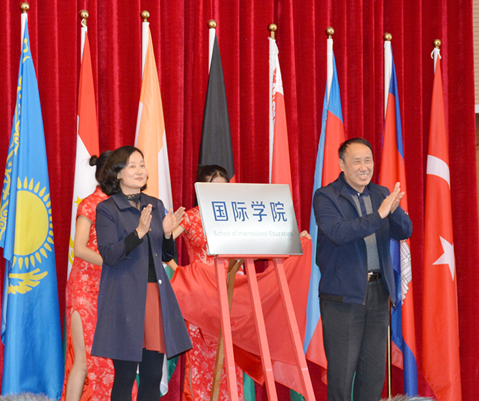 11月14日,学校在图书馆二楼报告厅举行国际学院、中国-上合组织青年交流中心联络处成立仪式。best365足球官网党委书记陈永明、云南省教育厅对外合作与交流处处长王源、云南省青年联合会秘书长林枫出席成立仪式并分别为“国际学院”、“中国-上合组织青年交流中心联络处”揭牌。