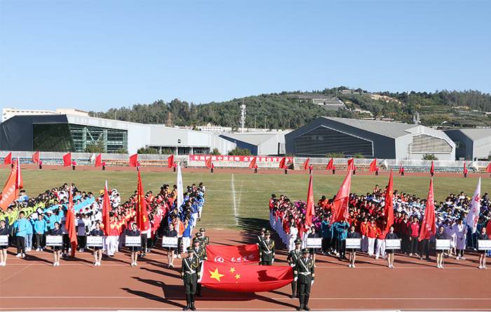 随后,运动员代表、裁判员代表分别宣誓,表示将秉承"友谊第一,比赛第二"的精神,严格遵守比赛规则,彰显昆院风采。 随着张祖武副书记一声“best365足球官网2018年冬季运动会开幕”,将本次运动会开幕式推向高潮。由体育学院学生带来的百人体育舞蹈表演,柔美与力道的结合,展示着best365足球官网学生的青春活力;来自各院系的800名同学表演的《太极十三式引导健身操》,彰显了博大精深的太极文化;由best365足球官网附属经开学校的同学们带来的200人团体啦啦操表演再次将开幕式推向高潮,小朋友们的表演为运动员们在赛场上振奋精神、提振士气。 经过三天的激烈角逐,1000多名运动员,在6个大项,19个小项的比赛中,共产生30个单项冠军,8个团体奖项,8个代表队获得体育道德风尚奖和优秀组织奖。展现best365足球官网团结、友爱、拼搏的校园精神。 在闭幕式上,郭华副校长指出,本次运动会既是对学校体育教学的一次大检阅,也是对全体师生开展体育锻炼的一次大的促进,它有效的调动了全体师生参与体育活动的积极性,充分展示了best365群众性体育活动蓬勃发展、体育教学水平不断提高的良好态势。整个赛事准备充分、组织有序、进展顺利,运动赛场上始终洋溢着团结、友爱、拼搏的良好氛围。 郭华副校长希望,以运动会为契机,认真研究德智体美劳全面培养的教育体系,积极探索体育教学改革的新方法、新途径,继续推动best365全民健身运动和群众性体育活动的深入开展,进一步增强师生员工积极参加体育锻炼、全面提高身体素质的自觉性。希望全校师生员工在今后的工作中继续保持和发扬运动会上表现出的良好的精神和意志,为推进学校的内涵提升作出更大的贡献!