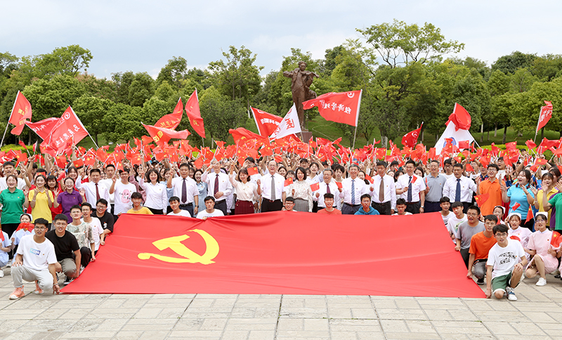 630日,学校团委组织的“以青春的名义,献礼建党百年”庆祝中国共产党成立100周年大学生“快闪”活动分别在聂耳广场、青年中心、学校南门精彩呈现。全体校领导、党委委员,党史学习教育领导小组成员单位负责人及青年师生团员共500余人参加了活动。