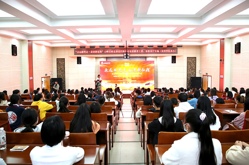 10月21日,党史学习教育“永远跟党走·奋进新征程”省委“云岭百姓宣讲团”巡回宣讲报告会在校举行。省委宣传部三级调研员、省委党史学习教育云岭百姓宣讲团领队周忠明,省委讲师团团长王勇,省委教育工委、省教育厅党史学习教育领导小组办公室实践活动组组长袁远,学校党委副书记李莉出席宣讲报告会。