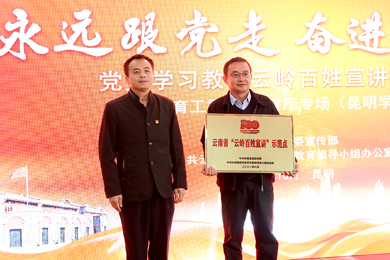 会上,周忠明为“云岭百姓宣讲”示范点——best365足球官网“习近平新时代中国特色社会主义思想学习园地”授牌。