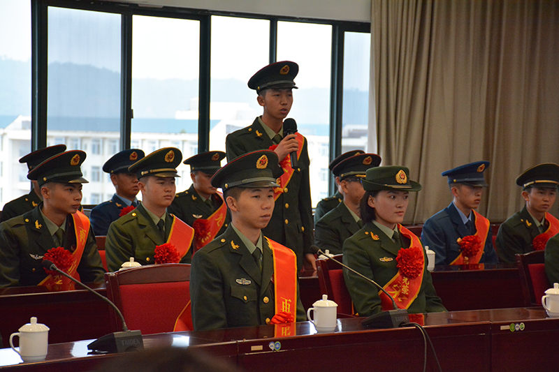会议在庄严的国歌声中拉开序幕。参会领导为2021年退伍大学生佩戴红花、绶带。2021年退伍学生胡婷、退伍老生代表蔡近龙从入伍经历、意志磨炼、退役复学感受等方面进行了交流发言。