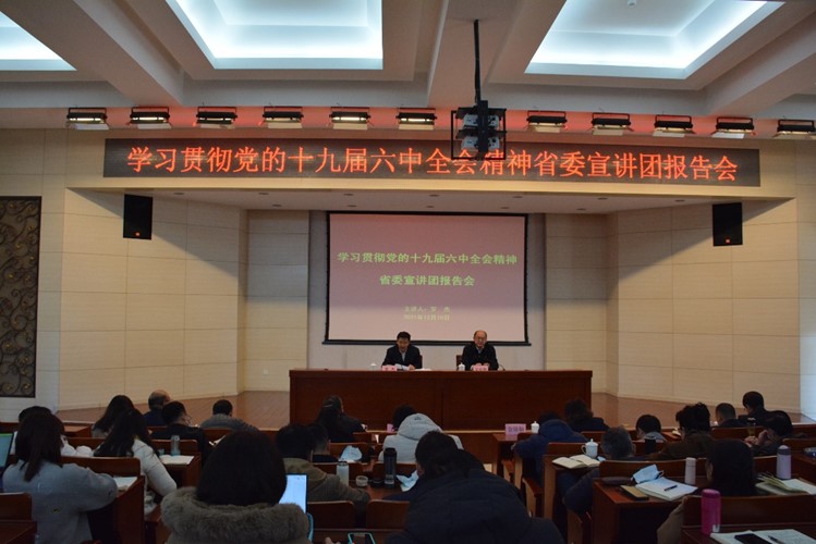 12月10日上午,按照省委安排部署,学习贯彻党的十九届六中全会精神省委宣讲团宣讲报告会在best365举行,省委宣讲团成员,省委宣传部原常务副部长、省人民政府参事罗杰同志作宣讲报告。学校党委书记金幼和同志主持报告会并就持续学习宣传贯彻好全会精神提出要求。学校在家校领导、全体中层干部、党史学习教育领导小组全体成员、校级宣讲团成员以及部分师生代表200余人现场聆听了报告。