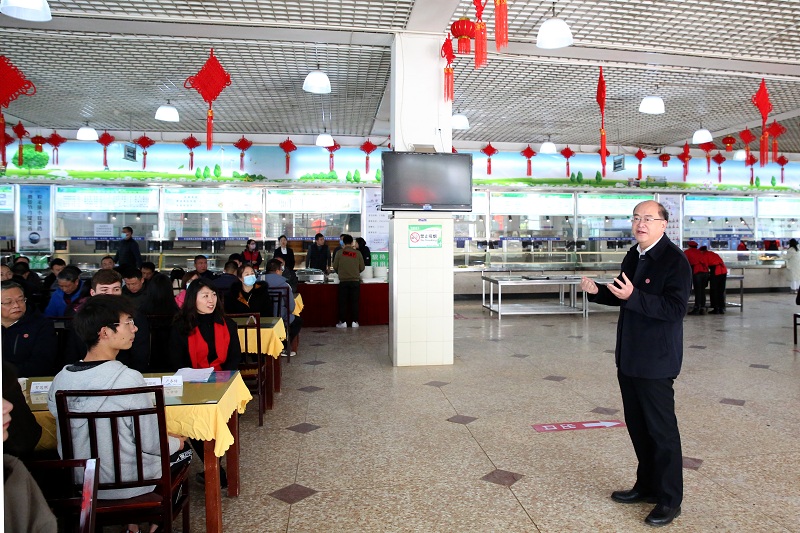 金幼和书记代表学校向寒假留校学生、外国留学生致以新春祝福,并对坚守岗位,筑牢校园疫情安全防线的值班教职员工表示感谢。他强调,学校相关部门要全力做好寒假期间疫情防控和服务保障工作,确保留校师生度过一个欢乐祥和、健康安全的虎年春节。