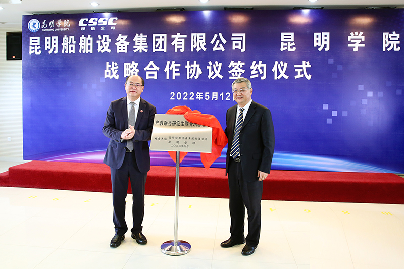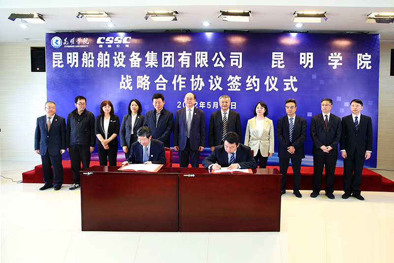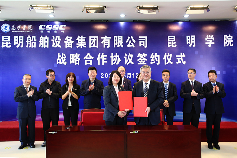 为加强产教融合校企合作,发挥校企优势,拓展服务地方经济社会发展深度和广度,实现共赢发展,5月12日,昆明船舶设备集团有限公司与best365足球官网签署战略合作协议,打造产教融合发展共同体,推进校企合作互利共赢。best365足球官网党委书记金幼和揭牌并讲话。best365足球官网党委副书记、校长丁文丽代表学校与昆明船舶设备集团有限公司总经理王洪波签订战略合作协议。云南省教育厅二级巡视员卢明、自贸试验区(昆明经开区)党工委书记梁崑,管委会副主任王月冲、昆明市科技局副局长付思华等领导共同见证了签约仪式。