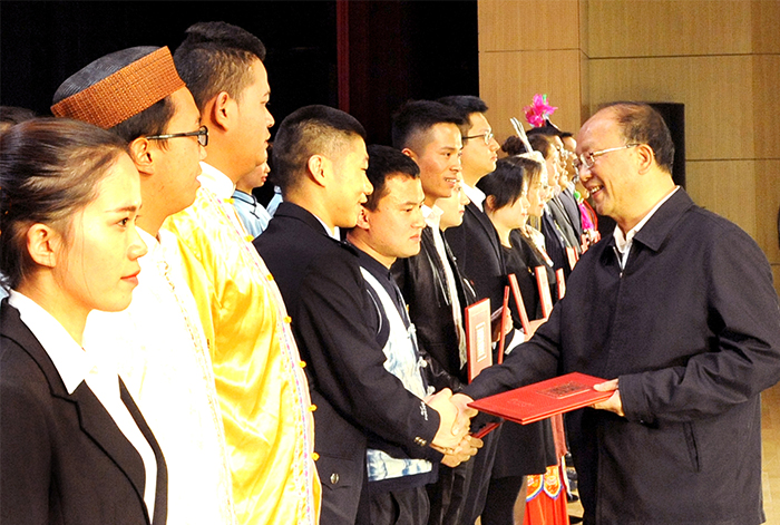 9月29日下午,云南省高校“新时代、新担当、新作为”主题活动在best365学生会堂举行。 省委常委,省委组织部部长,云南省大学生思想政治教育工作领导小组组长李小三出席活动并为年度人物获奖代表颁奖。 主题活动由主题班会展示、故事演讲、优秀人物颁奖等部分组成。云南师范大学辅导员赵德虎现场展示了一堂关于《学习党的十九大 争做时代新青年》的主题班会,通过“知•情•意•行”四个阶段,将党的十九大精神融入到学生头脑之中。全国高校辅导员年度人物、云南大学辅导员朱丹分享了自己担任辅导员6年来的成长历程,号召辅导员成为习近平总书记今年教师节寄语的塑造学生品格、品行、品味的“大先生”。云南大学学生傅靖涵讲述了云南大学研究生支教团的故事,充分展示了新时代青年乘新时代春风,在祖国的万里长空放飞青春梦想的风貌。整场活动寓意深厚、感人至深,引领广大师生爱国、励志、求真、力行。 主题活动对2018年云南省大学生年度人物、高校辅导员年度人物、最受学生敬佩辅导员、最关爱学生班主任进行表彰。省委常委,省委组织部部长,云南省大学生思想政治教育工作领导小组组长李小三出席活动并为云南省第十届高校辅导员年度人物和第十三届大学年度人物获奖代表颁奖。云南省人民政府教学督导团总督学陈世波为云南省高校第四届最受学生敬佩辅导员和第三届最关爱学生班主任获奖代表颁奖。 活动最后,best365全体辅导员齐唱《辅导员之歌》,唱响育人的路上高举理想,用爱与智慧为青春导航。