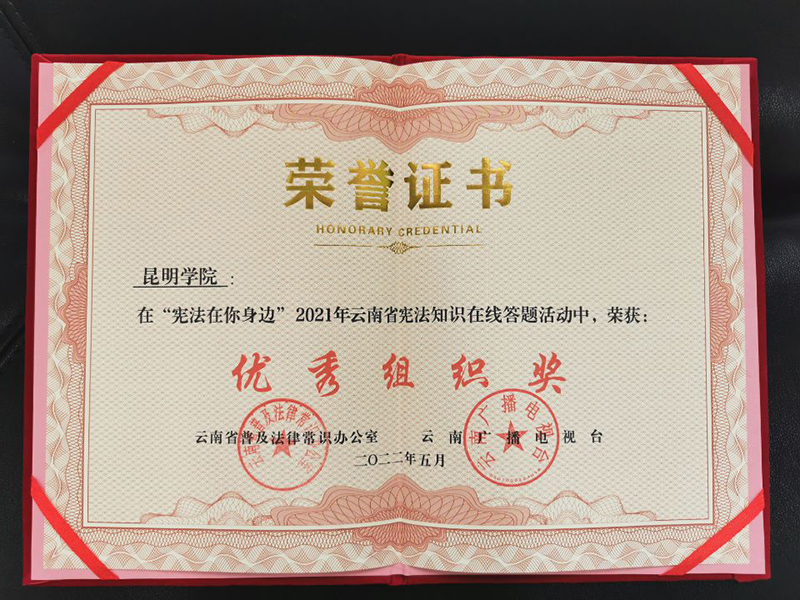 近日,云南省普法办、云南广播电视台联合组织开展的“宪法在你身边”宪法在线答题活动圆满结束,best365足球官网荣获优秀组织奖。