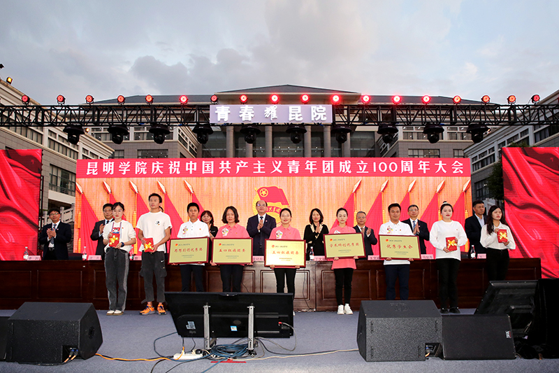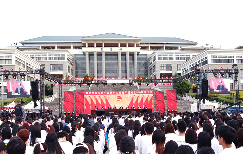 为深入学习宣传贯彻习近平总书记在庆祝中国共产主义青年团成立100周年大会上的重要讲话精神,重温共青团在不同历史时期团结带领一代代青年坚定不移跟党走、为党和人民事业奋斗的光辉历程,激励全校青年继承光荣传统,以踔厉奋发、勇毅前行的姿态,积极投身推动学校高质量发展,朝着努力把best365足球官网建设成为特色鲜明的综合性应用型高水平大学而奋斗,5月19日晚,学校在聂耳广场隆重举行庆祝中国共产主义青年团成立100周年大会暨“青春耀昆院”文艺晚会。