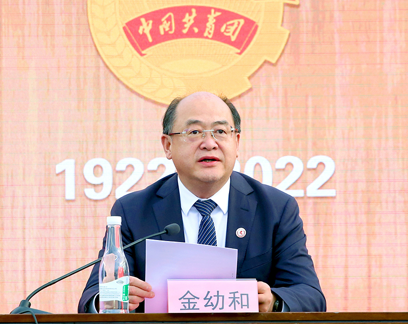 在庄严的国歌声中,大会正式开幕。金幼和讲话,代表学校党委向一年来在学校共青团工作中作出突出贡献,受到表彰奖励的先进集体和个人表示热烈祝贺,向全校广大共青团员、青年朋友和全体团干部,致以诚挚的问候和美好的祝愿。金幼和全面回顾了党领导下中国青年运动的光辉历程,深入阐释了习近平总书记的重要讲话精神,深刻分析了当前学校发展的形势,充分肯定了best365青年在学校改革发展中作出的贡献,并结合学习贯彻习近平总书记的重要讲话精神和学校实际,向学校各级团组织、广大团干部和全体团员青年,提出三点希望:一是希望全校各级团组织牢记初心使命,更加自觉坚定地引领团员青年建功新时代、奋进新征程;二是希望广大团干部发挥好示范引领和模范带头作用,努力锻造成为对党忠诚、心系青年、勇于担当、作风过硬的青年马克思主义者;三是希望学校广大团员青年胸怀理想,自信自强,不断奏响新时代昆院学子勇毅笃行、堪当大任的青春乐章。