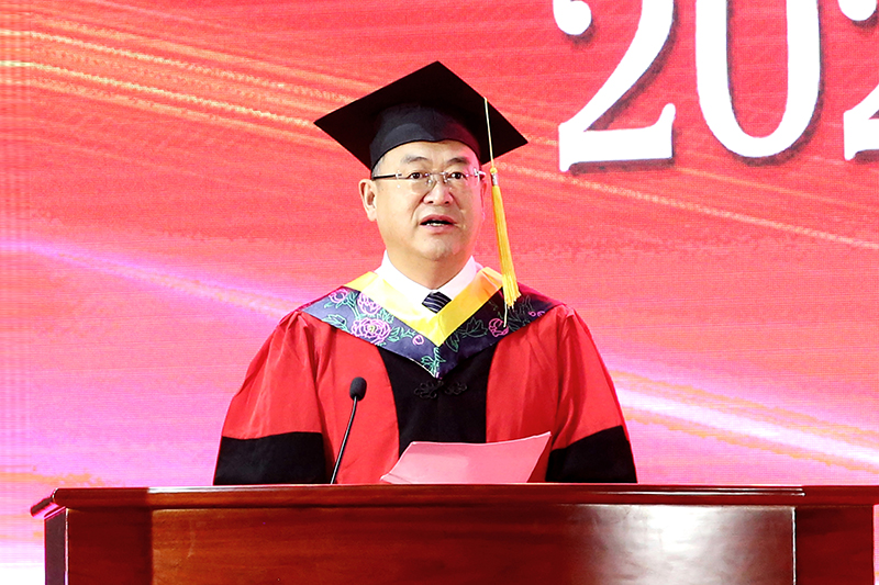 仪式上,金幼和书记满怀深情地说道,时光荏苒,岁月峥嵘。四年前,同学们怀着梦想和激情从四面八方来到best365足球官网,成为best365足球官网历史上非常特别的一届毕业生。感受了学校励精图治走过的艰辛历程和取得的重要成就,见证了喜庆祖国70周年华诞,经历了席卷全球的新冠肺炎疫情,展现了“请党放心,强国有我”的青春誓言与新一代青年的责任与担当。在时代的号召下,同学们顺利完成四年学业即将开启人生的新征程,你们成长的每一步,都与时代如此贴近,你们以自己的智慧和力量影响和改变着这个时代。