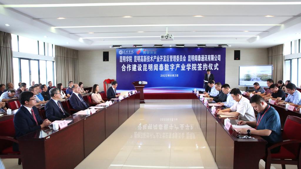 签约仪式由学校副校长王凡主持。学校党委副书记王文成,副校长马银海、李剀,以及昆明高新区、闻泰科技相关负责人,学校相关职能部门、二级学院主要负责人参加签约仪式。