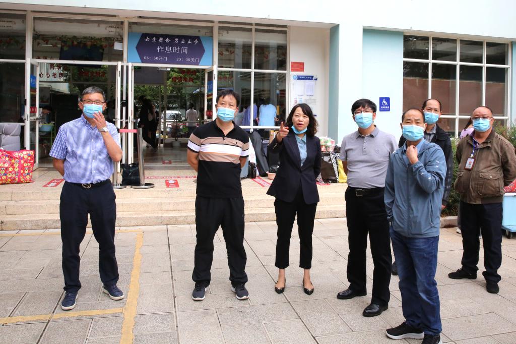 会前,丁文丽一行到学校校门、学生宿舍、食堂、校医院等重点区域,现场查看疫情防控、宿舍管理、后勤保障、校园卫生环境等情况,对存在的问题提出整改要求。