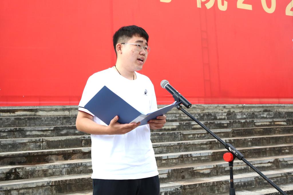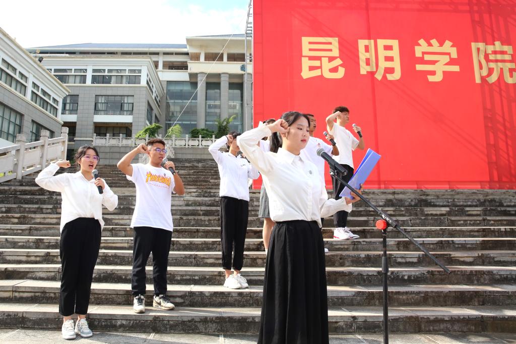 “我宣誓,秉承‘明德至善,知行利物’校训精神,坚定信念、勇担使命,志存高远、报效祖国,爱校荣校、诚信友善,博学强识、勇毅前行。用实际行动,跑出新时代昆院学子的最好成绩!青春向党,强国有我!”