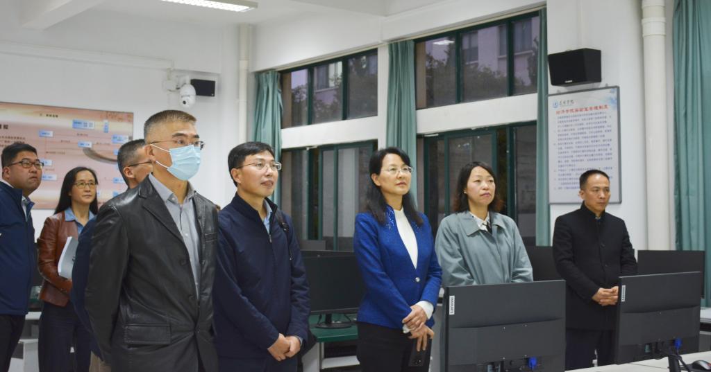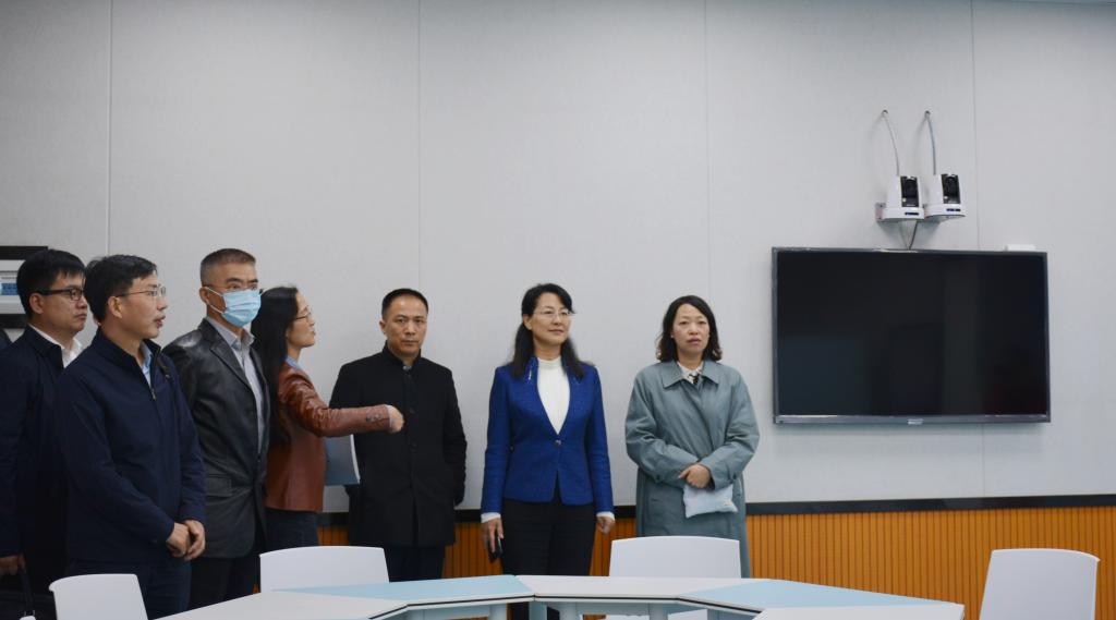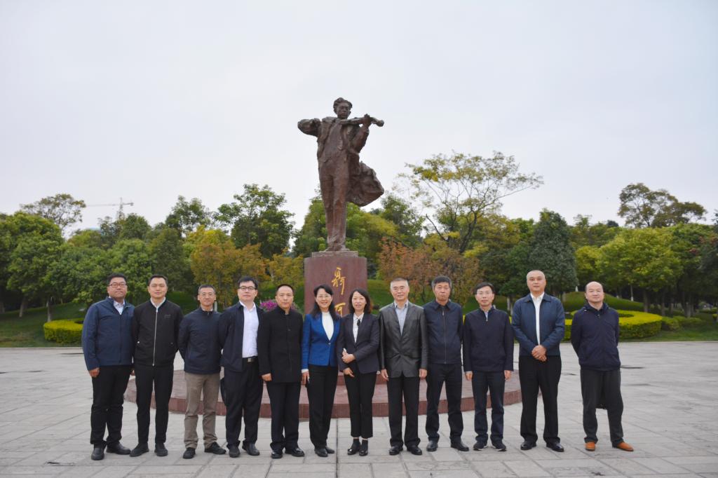 会后,丁文丽陪同来宾一行参观了best365经济管理学院(自贸学院)证券投资仿真实验室、财务管理ERP综合模拟实验室、国际贸易实验室和智慧教室,并在聂耳像前合影留念。