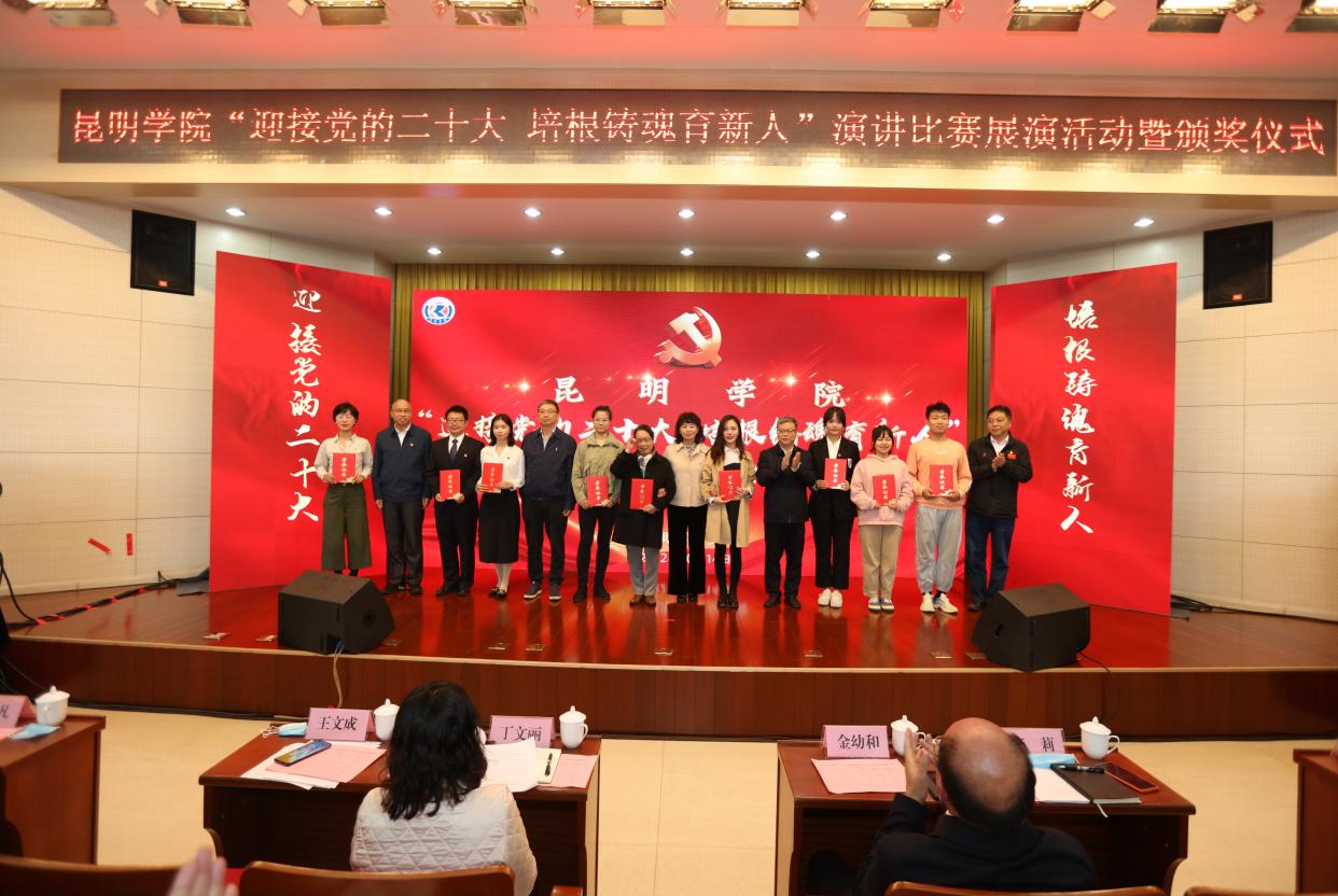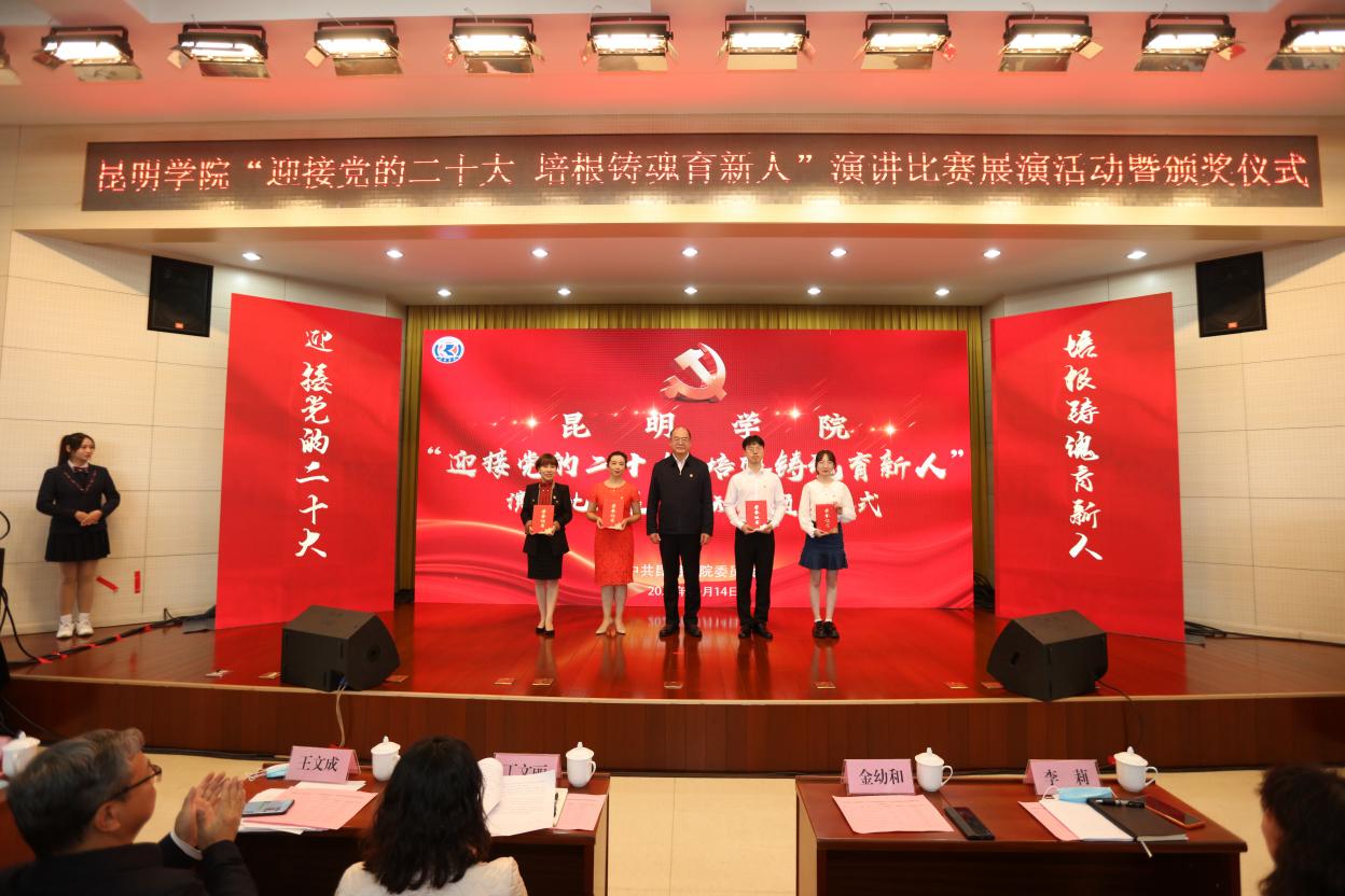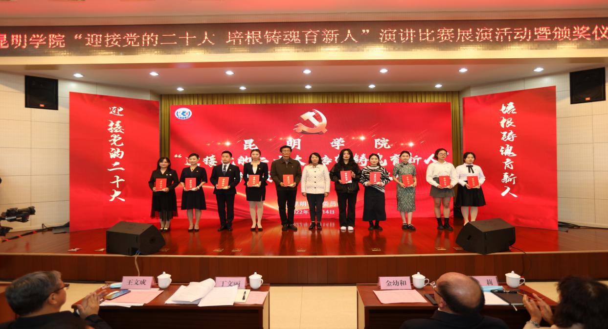 10月14日下午,学校举办“迎接党的二十大 培根铸魂育新人”演讲比赛展演活动暨颁奖仪式,展现昆院人饱满的精神风貌、崭新的工作姿态、坚定的担当作为,以实际行动和优异成绩迎接党的二十大胜利召开。