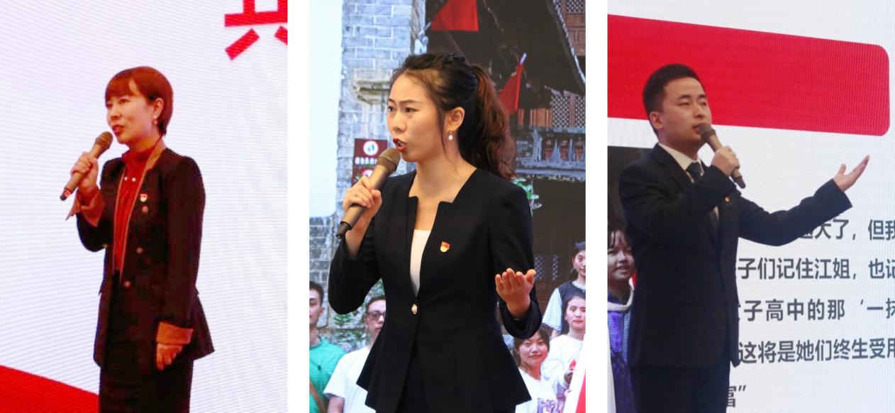 教师组代表声情并茂地讲述了从事一线教学的亲身经历,表达了作为人民教师始终牢记使命,在教学岗位踔厉奋发、潜心育人的坚定信念。