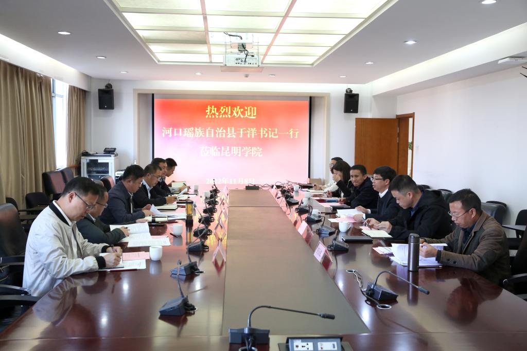 11月8日,河口县委书记于洋、副县长熊万和一行,就县中托管帮扶事宜到学校座谈交流。学校党委书记金幼和,党委副书记李莉,党委委员、副校长李剀热情接待了来宾一行。