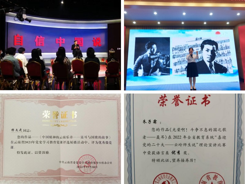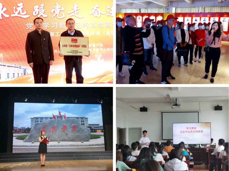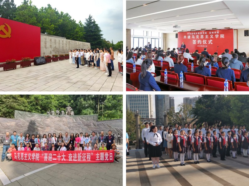 学院围绕学校改革发展大局和学院中心工作,充分发挥政治引领作用,把全面加强党的领导贯穿于立德树人全过程。一是深化理论学习,抓实理论研究阐释。充分利用党组织理论学习、周五学习、“学习强国”、“云岭先锋”、“周末大讲堂”各类学习平台,组织党员、干部开展学习教育,做到学习教育全覆盖,做到理论学习与教学工作相融合、相促进。发挥学科优势,深入研究阐释马克思主义中国化理论成果、习近平新时代中国特色社会主义思想,积极参与昆明市理论和政策咨询,努力发挥马克思主义学院在理论研究和解决现实问题中的智库作用,多篇决策咨询报告被地方政府采纳和转化为工作文件。二是加强党组织建设,抓强理论宣传教育。围绕“突出重点、凝练特色、创建品牌”的工作目标,严格落实支部规范化标准化建设,通过组织师生党员到扎西、嘉兴、遵义研学,不断增强党支部的凝聚力和战斗力。引导教师发挥专业优势,成立党的创新理论师生宣讲团,打造有影响力和感染力的理论宣传平台,深入机关、学校、企业、社区,广泛开展党的理论宣传和普及,不断推进新形势下马克思主义大众化。“习近平新时代中国特色社会主义思想学习园地”被省委宣传部、省委党史学习教育领导小组办公室评为“云岭百姓宣讲”示范点,多名教师被聘为省委教育工委、昆明市委和学校党委党史学习教育宣讲团成员。三是强化多元协同,抓实思政课一体化。在学校“ 四联动”工作“大格局”(思政课各课程间联动、传统教学与新媒体联动、思政课程与专业课程联动、马克思主义学院与职能部门联动)的指导下,实现课程思政与思政课程同向同行、日常思政工作与思政课程同频共振。学校与昆明市委宣传部共建马克思主义学院,建设”昆明市大中小学思政课一体化协同创新基地”;20229月,与长春小学、昆明市第二中学共同组织开展“讲好聂耳和国歌的故事、铸牢中华民族共同体意识”昆明市大中小学开学第一课活动。