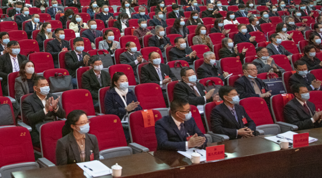 大会主席团成员在主席台就坐。