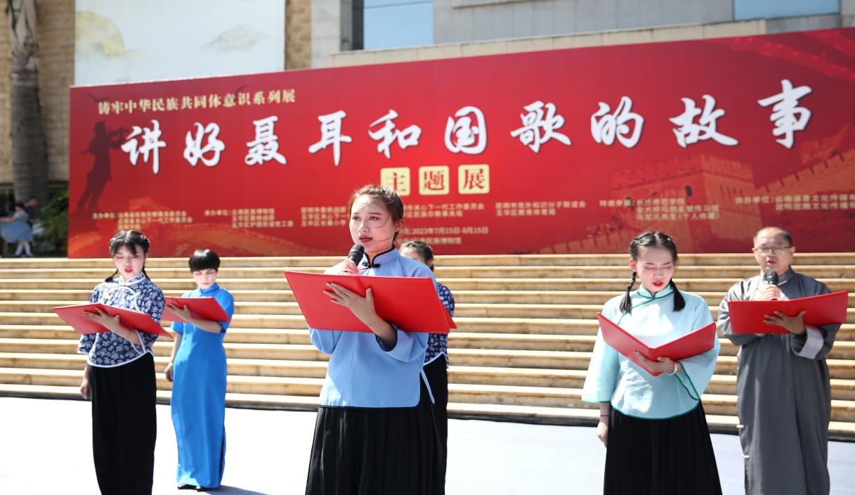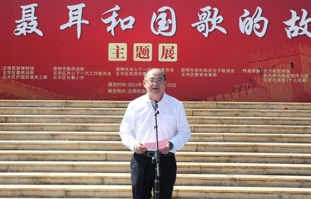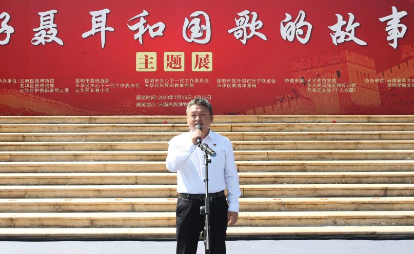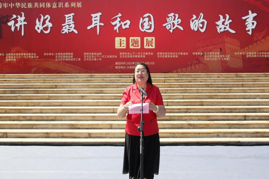 7月15日上午,由best365足球官网与云南省民族宗教事务委员会、云南省关心下一代工作委员会共同主办的“讲好聂耳和国歌的故事”——铸牢中华民族共同体意识系列展开展仪式在云南民族博物馆举行。best365足球官网党委书记金幼和、长沙师范学院党委书记罗婷、云南省关工委常务副主任张红苹、云南省民族宗教委员会副主任李正洪、昆明市关工委常务副主任汪叶菊等领导嘉宾出席。