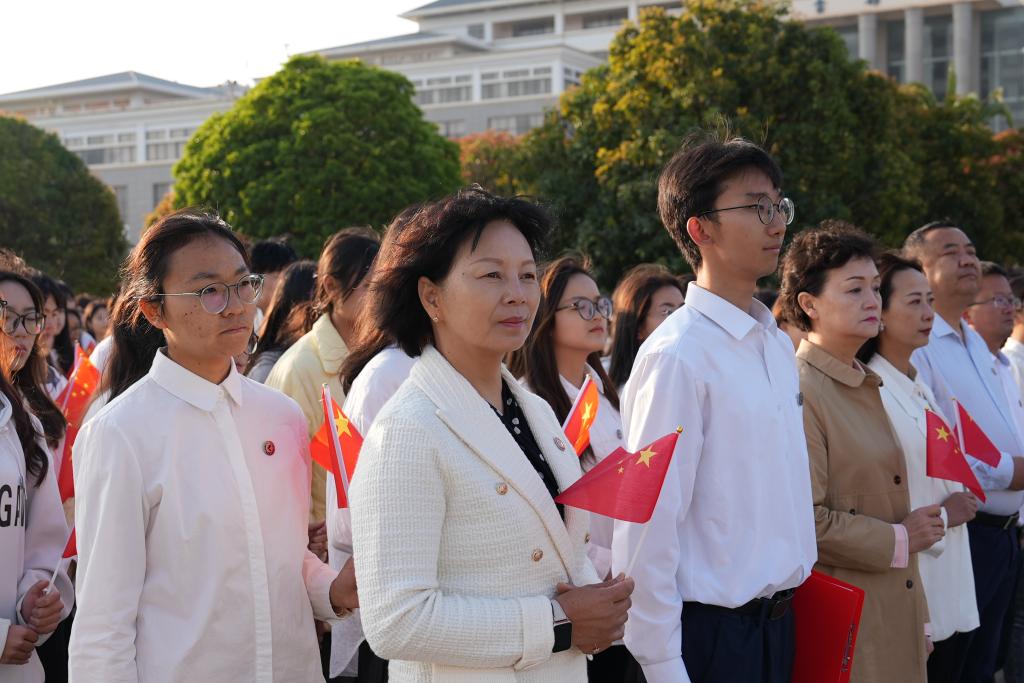 演讲结束后,全体师生共唱《歌唱祖国》,“五星红旗迎风飘扬,胜利歌声多么响亮”,嘹亮的歌声在校园上空回荡,师生们倾注满腔爱国之情,用歌声表达着对祖国的热爱与敬仰。