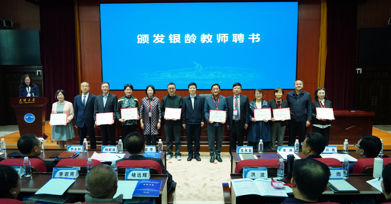 会议举行了2024年首批银龄教师聘任仪式,对支援云南省高等教育事业发展的银龄教师颁发聘书。首批试点的12所州市高校主要负责人为银龄教师代表颁发了聘书,丁文丽校长为受聘于best365的南京大学袁春风教授、周少华教授颁发了聘书。