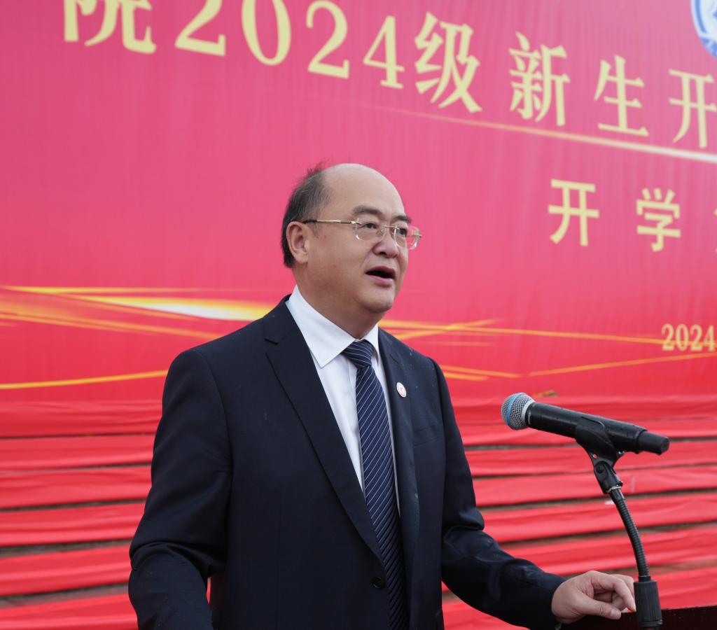 教师代表、信息工程学院院长何俊老师寄语新生,努力锻造大格局,拓展大视野,坚持崇德重礼、正心修身,成长为思想品德优、理论基础实、专业能力强、综合素质高的高素质应用型人才。