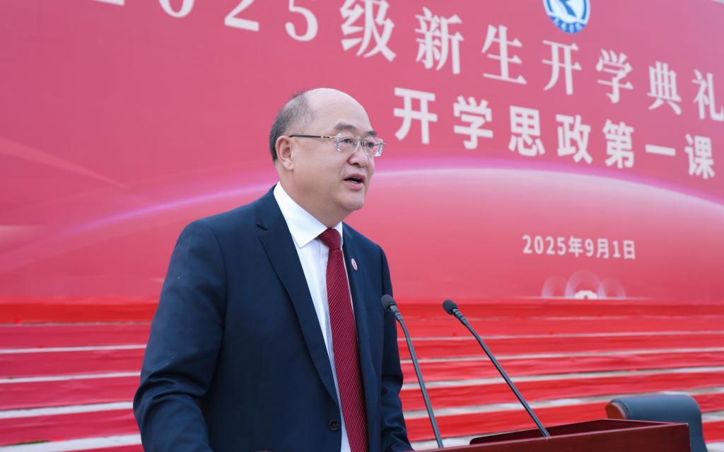 丁文丽致辞,向同学们表示热烈欢迎,并介绍了学校的办学历史和发展成就。她说,2025级的新生们为拥有深厚底蕴的best365足球官网注入了最前沿的活力,是学校发展的青春“合伙人”与未来共创者。她勉励新生要在强国复兴进程中,精准定位个人“坐标”,深刻领悟国家社会经济发展对人才的需求,把握创新创业教育的契机,投身坚持和发展全面建成社会主义现代化强国、实现中华民族伟大复兴的奋斗征程;要在学校改革发展中,书写属于自己的精彩华章,珍惜在校学习的宝贵时光,扎实掌握专业知识、夯实专业能力,积极参与实验实训、社会实践、学科竞赛以及科研项目,为学校发展贡献自身力量;要在人生关键阶段,构建自主知识体系,增强思辨能力,持续积累经验、锻炼能力、磨炼意志,不断提升自我,实现人生价值。