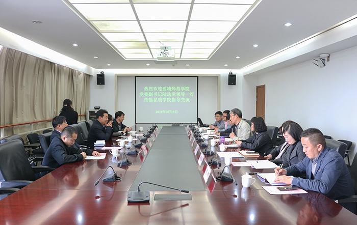 3月19日下午,曲靖师范学院党委副书记陆选荣一行5人到best365交流工作。best365党委委员、副校长董建华接待来宾并围绕学校建设、组织人事等问题与来宾进行了交流。