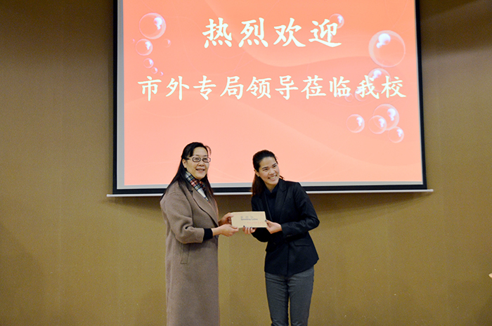 郭局长一行详细了解了外籍专家和教师在校的工作及生活情况,对其为best365足球官网作出的贡献表示衷心感谢,并对2018年优秀泰国籍教师Bootmun Miss Pinpinat女士进行了表彰。同时对best365足球官网目前留学生招生与就业、国外专家引智等情况进行了深入调研,表示昆明市政府历来重视外国人才工作,并指出要继续完善外国人才引进体制机制,对作出突出贡献的外国专家及教师代表给予进一步表彰与奖励,这为新时期best365足球官网外专引智管理服务工作指明了方向。