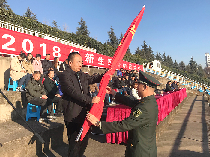 2019年1月7日上午,best3652018级新生军训开训动员大会在田径运动场举行。学校副校长郭华出席大会并作开训动员讲话。学校党办、校办、宣传部、学生处、保卫处、团委、各院系等单位的负责人参加了动员大会。 郭华副校长指出,“军训”作为大学教育的第一课,是学校人才培养的重要环节,是塑造精神气质的有效载体,也是同学们人生旅途中又一个新起点。大学生军事训练的主要任务是训思想、训纪律、训作风、训精神,练技术,练体力,练意志,练品质,这既是学习的过程,也是历练的过程,更是拼搏的过程。并强调,为保证本次军训有序推进,取得实效,学校将严格按照《中华人民共和国国防教育法》、《兵役法》等相关法律法规要求,集中开展为期13天的军事理论课和军事技能训练课学习,内容涉及国防知识、军事理论,队列训练、擒敌战术,战伤救护、内务卫生等训练科目。时间紧,任务重,强度大,挑战多,是对每一位参训同学的全方位考验,军事训练既发挥着锻炼身体素质,磨练意志品格的良好作用,更是同学们今后良好的生活和学习习惯的养成基础。 郭华副校长强调,军训是学习,军训是磨练,军训是收获,军训更是考验。同学们要上好军训这堂课,习得良好的集体协作精神,把小我融入到大我之中,在青春的征途上不断奋斗启航;要虚心求教,勤学苦练;要服从指挥,令行禁止;要团结协作、保障安全。 郭华副校长向军训团授旗并宣布best365足球官网2018级新生军事训练开训。
