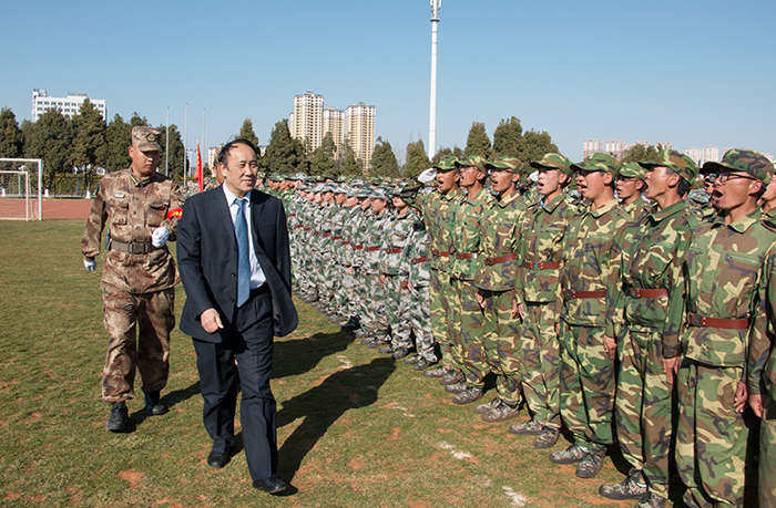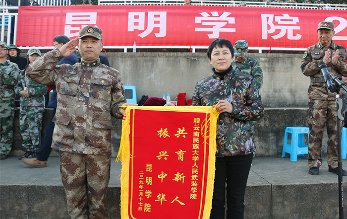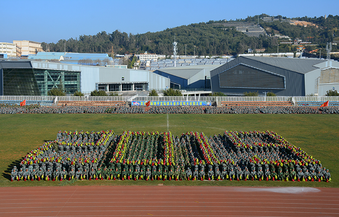 1月17日,best365在田径运动场举行2018级学生军训汇报表演暨总结表彰大会。省教育厅体卫艺术调研员李宏坤,云南省学生体育协会、学校国防教育专业委员会主任毛智贤,学校党委书记陈永明,校长黎素梅,党委副书记熊晶,副校长郭华、董建华、沈凡、马银海、王凡等领导出席大会。大会由郭华副校长主持。 军训汇报表演在庄严的国歌声中拉开序幕。学校2018级4900余名参训同学在承训教官的精心指导下,以“坚韧不拔、毫不松懈、永不服输”的精神,顶烈日、冒风雨,克服重重困难,圆满完成军训任务。今天,他们斗志昂扬,整装待发,时刻准备接受领导的检阅。 陈永明书记检阅军训方队。在激昂的阅兵进行曲中,陈永明书记依次检阅受训方队,同学们意气风发,精神饱满,“老师好!”“好好学习,为校争光!”的口号清晰嘹亮,响彻学校上空。在分列式进行曲中,标兵就位,分列式开始,来自各院系方阵代表的同学们士气高昂,以整齐的步伐、宏亮的口号、严整的军姿向主席台前进,气势恢宏,将14天的军训成果展现得淋漓尽致。 分列式完毕,军事训练科目汇报表演正式开始。首先登场的军歌合唱队列唱响了《我是一个兵》、《当那一天来临》、《强军战歌》,用嘹亮军歌唱出了军训的热情,唱出了拼搏与坚持。由144人组成的女子匕首操队列动作精炼,整齐划一,场上“杀”声不断,声音嘹亮,气势如虹。拳术队列表演了军队的传统拳术捕俘拳,精神抖擞,充分展示了正道学子的风采。跪羊图列队结合中国传统经典,演绎感恩歌曲《跪羊图》,以弘扬传统道德为目标,使人深受感动。反恐战术队列以基础动作展示和战场模拟形式将汇报表演推向高潮,以专业的动作展示出他们的拼搏精神。花样队列身着迷彩,手拿红黄啦啦操花球,用队形变换出校徽、党徽、“中国”等样式,整个画面整齐流畅,赢得阵阵掌声。 汇报表演结束后,熊晶副书记宣读了《关于表彰best365足球官网关于2017级学生军训优秀集体,优秀个人的决定》。与会领导为内务优秀宿舍、军训优秀学员、优秀带队教官代表、优秀辅导员颁奖。美术与艺术设计学院2018级杨诗玉同学作为军训优秀学员代表发言。 黎素梅校长作总结讲话指出,进行军事训练是党中央、国务院、教育部做出的具有战略意义的决定,是全面提高大学生素质,培养社会主义建设者和接班人的必修课,希望同学们要肩负国家使命,培养国家意识,做到内外兼修,真正成为中国特色社会主义的合格建设者和可靠接班人;希望同学们继续发扬脚踏实地、百折不挠、永不服输的精神,努力践行社会主义核心价值观;希望同学们学会坚持,发挥不屈服、不放弃的精神,不怕失败,从成长中享受成长的快乐。 会上,黎素梅校长为承训单位赠送锦旗。