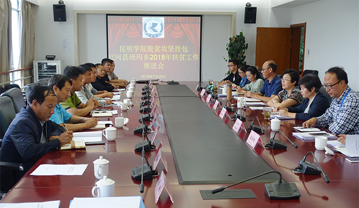 7月25日,熊晶副校长在行政办公楼311会议室主持召开省级挂包点2018年脱贫攻坚工作推进会,推进落实学校年度扶贫工作。红河县垤玛乡乡党委书记朱福祯、学校驻腊哈村扶贫工作队等一行12人,学校学前教育与特殊教育学院、农学院、工会、附属学校等相关成员单位负责人参加会议。