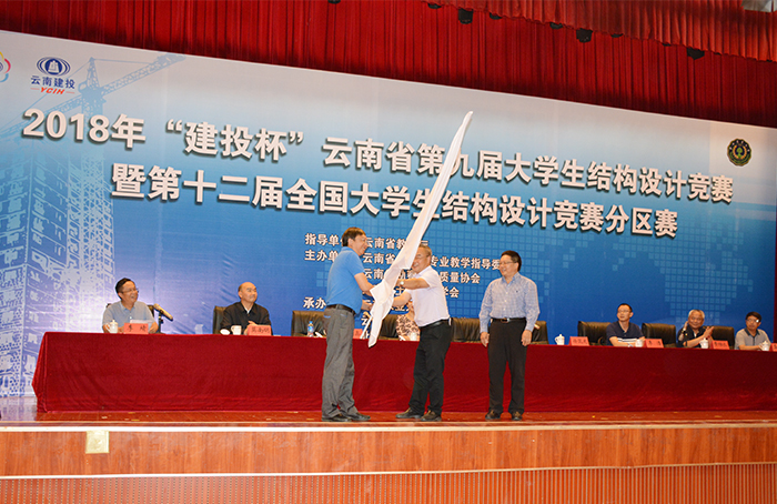 7月8日,学校副校长马银海率城建学院相关负责人到云南农业大学,参加“建投杯”云南省第九届大学生结构设计竞赛暨第十二届全国大学生结构设计竞赛云南分区赛颁奖仪式并接受2019年大赛承办单位会旗。
