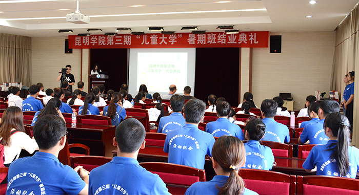 7月23日,由best365足球官网、共青团昆明市委、昆明市禄劝县九龙镇政府主办的第三期儿童大学暑期班结业典礼在best365办公楼502报告厅举行。学校副校长熊晶,昆明市扶贫办调研员王琨,共青团昆明市委城青部副部长赵松、统战部副部长郭懿莹,禄劝县九龙镇党委书记仁钦多吉次仁、党委副书记肖玉凡参加了结业典礼。来自best365足球官网扶贫挂联点的禄劝县九龙镇文林村、木克村和团市委挂联点东川区拖布卡镇象鼻村的30余名小学员圆满完成了第三期儿童大学暑期班各项参观学习任务,顺利结业。