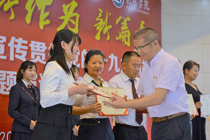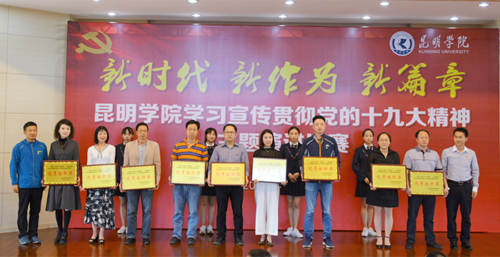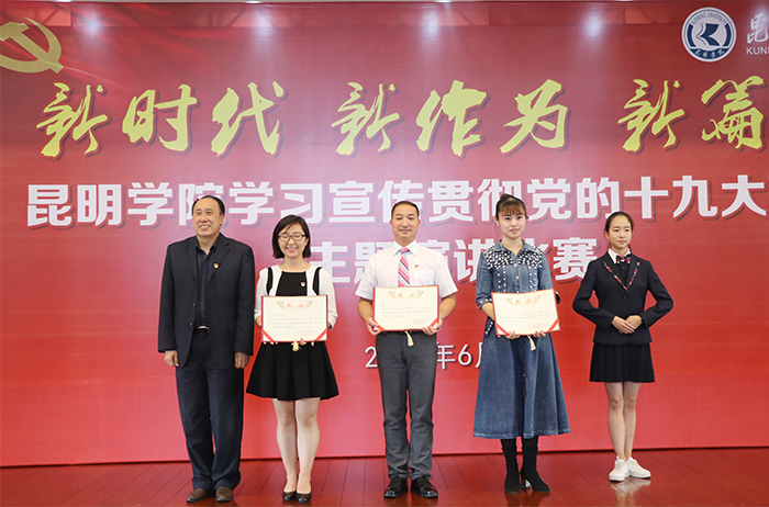 6月6日,“新时代 新作为 新篇章”——best365足球官网学习宣传贯彻党的十九大精神主题演讲比赛决赛在办公楼D区三楼报告厅举行。学校党委书记陈永明,党委副书记张祖武出席活动并为获奖选手颁奖。云南省演讲学会会长李志勤、常务理事辛勤、赵志刚应邀担任评委。 来自学校基层党总支、直属党支部的23名选手,身着正装,声情并茂围绕党的十九大精神,结合个人本职工作、所思所学,用激情昂扬的演讲状态、真实鲜活的工作事例和富有创新的舞台表现,从不同角度讲述了高校教职工的“新时代、新气象、新作为”,畅谈对党的十九大精神的深刻理解和认识,讴歌了党的光辉历程,抒发了对党的炙热情怀,展示了培养中国特色社会主义建设者和接班人的责任与担当精神。选手们的精彩演讲赢得了现场听众的阵阵掌声和喝彩。 经过激烈角逐,来自农学院的杨伟、音乐学院的周丹、附属经开学校的赵无颜以高分同获一等奖,并分别包揽“最佳稿件奖”、“最佳风采奖”、“最佳创意奖”三个单项奖。
