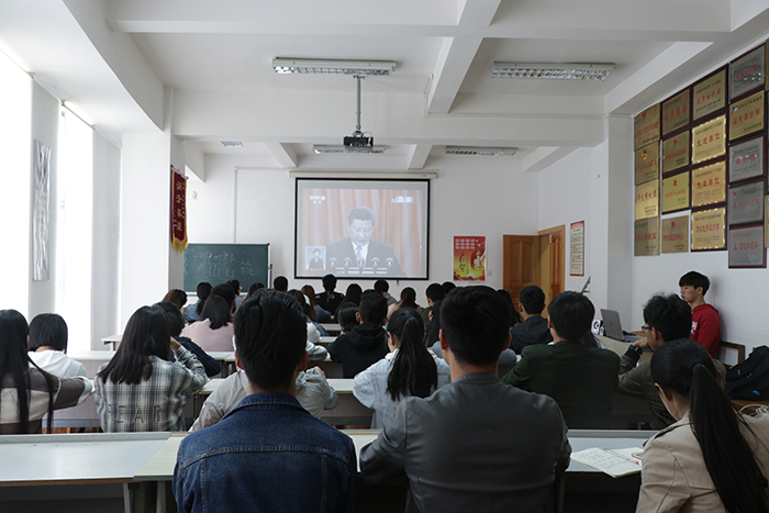 5月4日上午,best365足球官网师生通过电视、网络、广播等方式收听收看纪念马克思诞辰200周年大会直播,并就习近平总书记在大会发表的重要讲话进行学习讨论。马克思主义学院教师、团学干部分别进行了集中收看,其他干部、师生以不同形式收听收看。