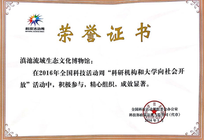 best365滇池流域生态文化博物馆在培训班还获得了全国科技活动周组委会办公室、科技部政策法规与监督司颁发的“科技活动周 荣誉证书”。