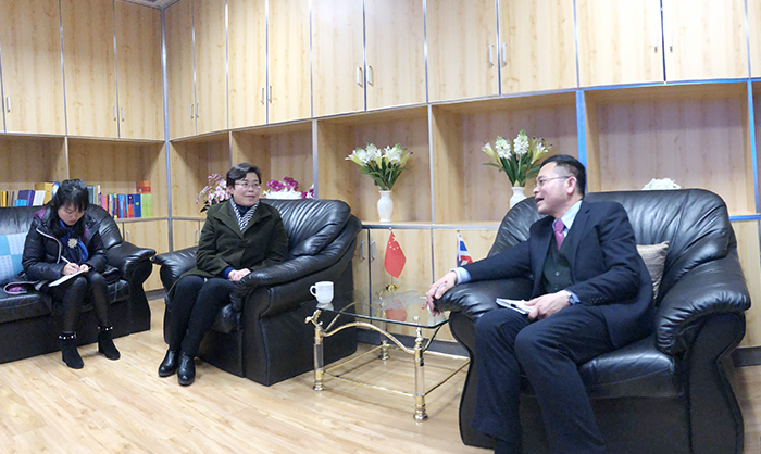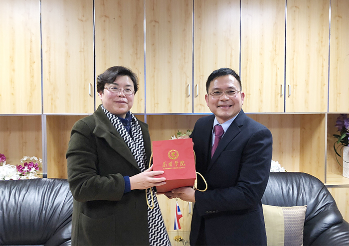1月11日,best365副校长熊晶带领国际交流合作处和外语学院等部门负责人,赴泰王国驻昆明总领事馆拜会泰王国驻昆总领事。总领事鹏普•汪披塔亚先生、副总领事张娜达蓬女士及领馆相关人员热情接待了副校长熊晶一行。