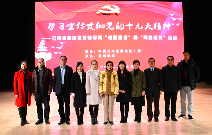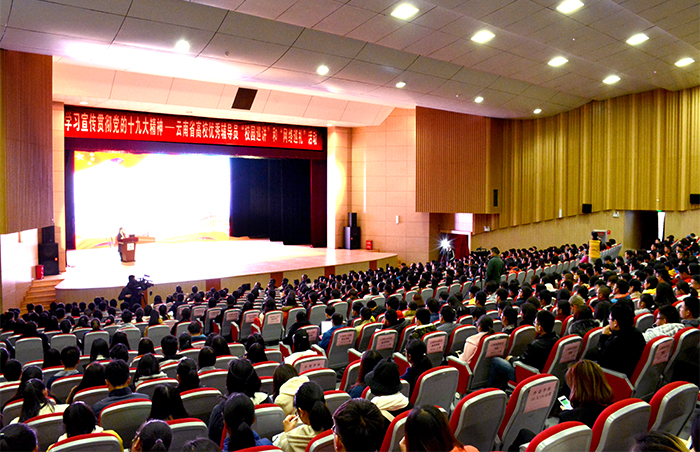 12月19日,由中共云南省委高校工委主办,8所云南省高校辅导员发展研究中心承办,全省各高校协办的“学习宣传贯彻党的十九大精神——云南省高校优秀辅导员校园巡讲和网络巡礼活动”首场校园巡讲报告会在best365学生会堂举行。 省委高校工委副书记陶晴,best365党委副书记张祖武、副校长郭华,云南农业大学、云南财经大学、西南林业大学、云南警官学院、best365足球官网等昆明主城区的13所高校的优秀辅导员和学生代表共1300多人参加了首场巡讲报告会。 报告会由副校长郭华主持。 报告会在雄壮的国歌声中拉开序幕。 党委副书记张祖武代表学校在致辞中对巡讲报告团莅临best365足球官网与广大师生共同学习党的十九大精神表示热烈欢迎,对巡讲报告团成员与广大师生分享学习心得感悟、所见所闻、所思所悟表示感谢。张副书记指出,党的十九大报告博大精深,需要我们从多方面、多领域、多角度去认识、体会和解读。“青年兴则国家兴,青年强则国家强。”报告中对年轻一代的深情寄语,让无数青年心潮澎湃。报告中还提到要优先发展教育事业、提高就业质量、科学创新等,这些都充分体现了以习近平同志为核心的党中央对教育、对广大青年的关注、关心和关爱。在座的各位都是国家建设发展的生力军,希望大家以此次巡讲报告会为契机,做到带着使命学、带着问题学、带着任务学,真正把党的十九大精神融汇于心、付诸行动。辅导员老师要努力将党的十九大精神融入到教学和科研工作中去,立足本职,当好青年的引路人、筑梦人。青年学生们要在全面学习领悟党的十九大报告的基础上,找准突破口,发挥专业专长,做有理想、有本领、有担当的青年人,不忘初心、牢记使命,将党的十九大精神在实际行动中落地生根。 教育部辅导员“双巡”活动全国报告团成员,第八届全国辅导员年度人物,云南省优秀共产党员,云南省首届最受大学生敬佩辅导员朱丹讲题为《把握新判断,青春有担当》;第八届全国高校辅导员年度人物入围奖、云南省第八届高校辅导员年度人物、云南省辅导员职业能力竞赛一等奖谭勇讲题为《成就新飞跃,坚定跟党走》;云南省2012年和2017年“优秀辅导员”陈绍薇讲题为《不忘新使命,续写新篇章》;昆明铁道职业技术学院电气工程系辅导员张羽寰讲题为《拥抱新时代,铸就中国梦》;云南省第六届高校辅导员“年度人物”,全国第五届高校辅导员职业能力大赛决赛二等奖伏云辉讲题为《踏上新征程 青年有作为》。巡讲团成员紧扣巡讲内容,主题鲜明,语言质朴生动,对党的十九大精神有较深入的学习和体会;通过具体案例和饱含深情的讲述使得宣讲报告贴近大学生实际,富有说服力和感召力。 此次辅导员“双巡”活动是为贯彻落实中央关于推动党的十九大精神进校园、进网络等“七进”的要求而组织开展的,活动旨在积极动员广大辅导员和青年学生学在一起,讲在一起,悟在一起,让身边人讲述身边事,用身边事教育身边人,促进自我学习,深化自我教育,实现自我成长,引导广大青年学生自觉用习近平新时代中国特色社会主义思想武装头脑,不忘成长初心,牢记时代使命,在实现中国梦的生动实践中放飞青春梦想,在为人民利益的不懈奋斗中书写人生华章。 活动由线下、线上两个环节组成。线下巡讲由中共云南省委高校工委遴选出23所高校的30名省级优秀辅导员分成6个巡讲组,由省级高校辅导员发展研究中心领队,将分赴全省各地各高校开展巡讲。云南省高校优秀辅导员“学习宣传贯彻党的十九大精神校园巡讲”从12月19日至12月29日将举办20场巡讲报告会,巡讲将覆盖全省76所高校。同时还将通过网络新媒体平台推送每场报告情况,2018年1月份始将组织全省高校师生积极参与教育部组织的“网络巡礼”活动。线上巡礼将在人民网、光明网等媒体开设“辅导员双巡”活动专题,进行在线学习交流,推动实现学习宣传全覆盖。