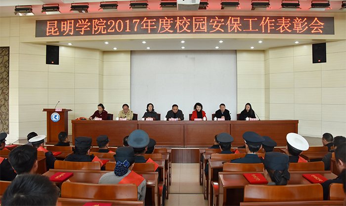 12月20日,best365在D区三楼报告厅召开best365足球官网2017年度校园安保工作表彰会,表彰在2017年度校园安保工作中涌现出来的优秀个人。党委委员、副校长郭华,机关党总支书记蔡华仙,学生处处长晁丽华,云南绅顿保安服务有限公司副总经理和莉虹出席表彰会,保卫干部、保安、学生治安服务队员共100余人参加表彰会,表彰会由保卫处处长李劲松主持。